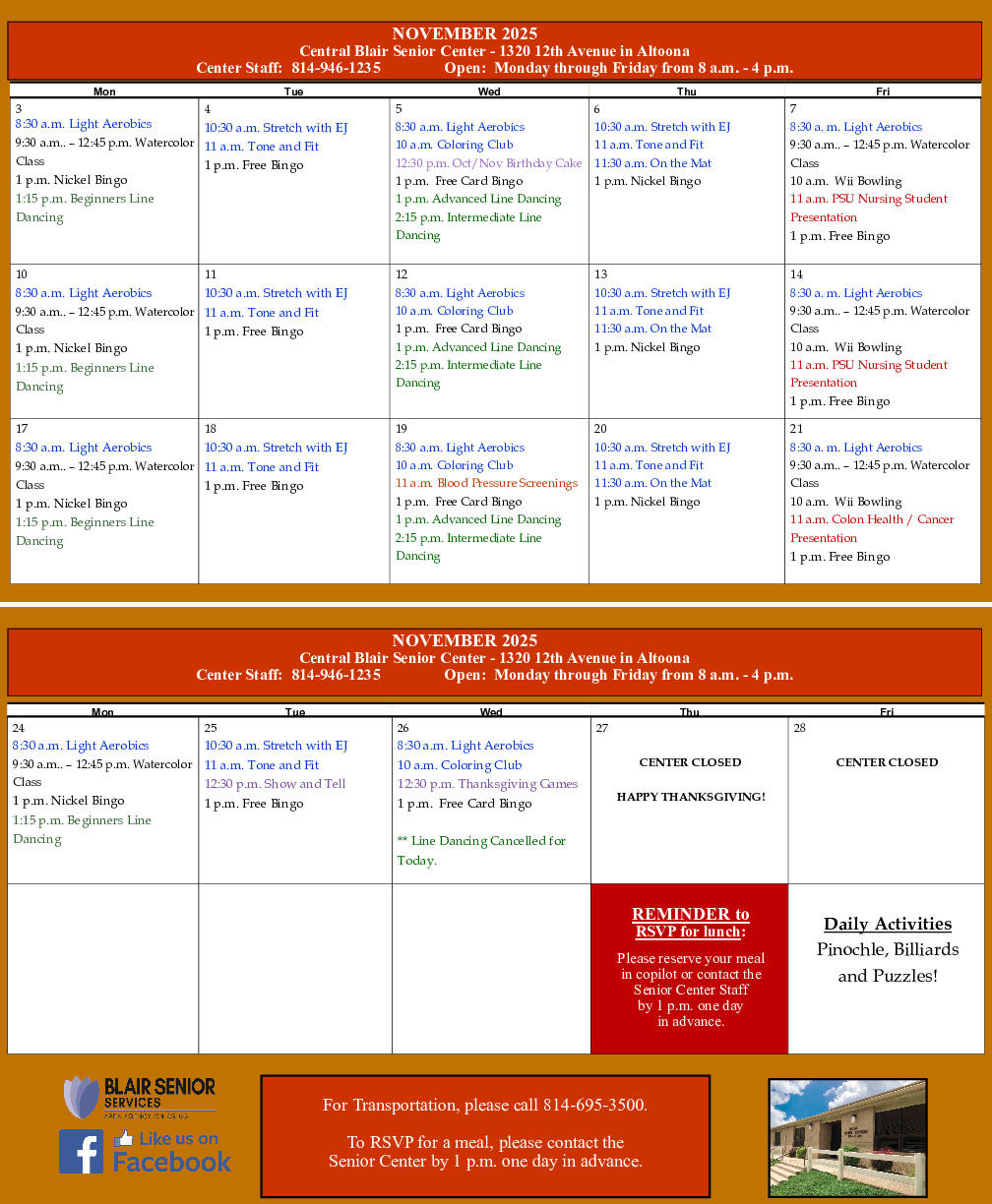 Blair Senior Services, Inc. serves residents of all ages through diverse programming and in Senior Centers in Blair County and surrounding areas.