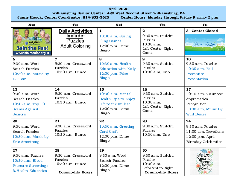 Blair Senior Services, Inc. serves residents of all ages through diverse programming and in Senior Centers in Blair County and surrounding areas.